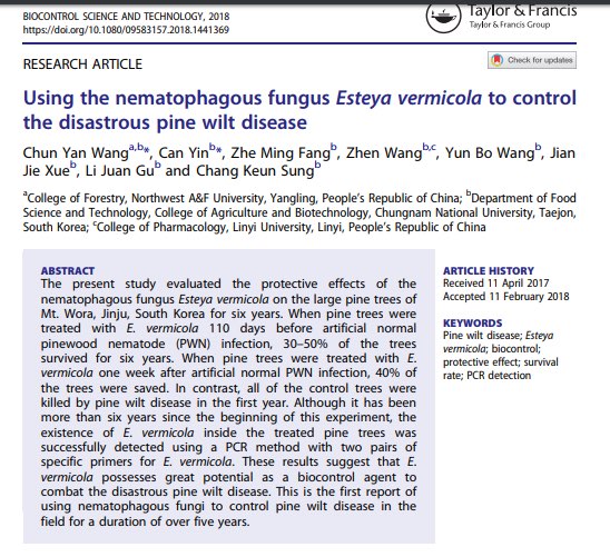 G810 천적 (Esteya vermocola)을 사용한 재선충예방방제 연구결과는